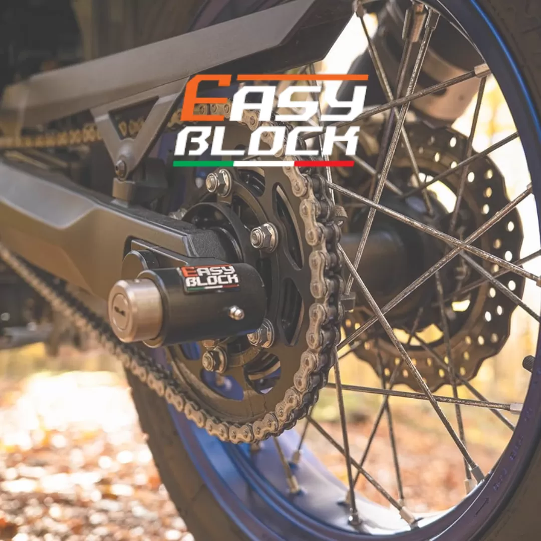 With generations of experience within the motorcycle industry and a commitment to our community, we have developed EasyBlock, a revolutionary wheel locking security device designed to protect couriers and riders on the go.''