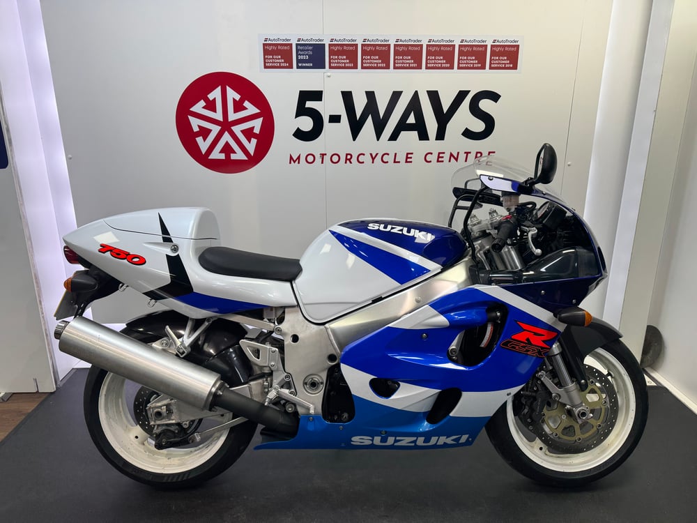Your opportunity to own a piece of GSX-R history. This 1999 SRAD is in incredible original condition for its year. All original facotry paint and panels, and in standard spec with no aftermarket mods. Registered in Sept 1999 and then sold to its last keeper in March 2000, so just one keeper in the last 25yrs.This bike was loaned by us to Suzuki GB recently for display at Motorcycle Live due to its stunning originality and to help Suzuki celebrate 40yrs of GSX-R. Truely a "one-off" example at such low miles and with so few keepers. A really usable classic sportsbike in fantastic condition. Comes valeted and detailed to our usual impeccable showroom standards. We are 8-times winners of the Autotrader “Highly Rated” award and Autotrader Motorcycle Retailer of the Year 2023. Please read our reviews, we pride ourselves on delivering outstanding customer service. As franchised motorcycle retailers we deliver top quality motorcycles prepared to the very highest standards by our manufacturer trained and approved technicians. Buy with confidence – we are a 2nd generation family fun dealership, established in 1980. View our website page “Why 5-WAYS” for more information on our dealership and what makes buying from us a pleasure. Please note the price advertised on Autotrader includes our £59 administration fee. In all other media, a £59 doc fee is payable in addition to the advertised price. Delivery available throughout the UK Mainland. Contact us for a bespoke quote