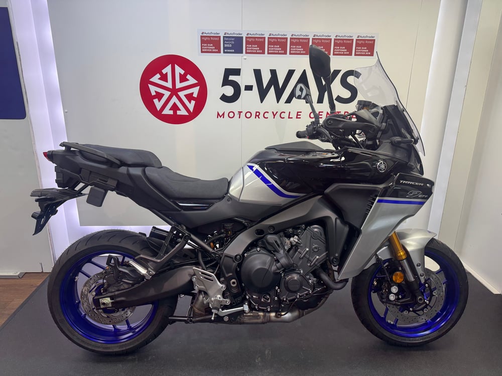 This bike is a brand new, unregistered Tracer 9 GT+ Y-AMT with zero miles. Comes with full Yamaha benefits - 3-year parts and labour warranty and, 2 year’s free RAC roadside assistance. We are 8-times winners of the Autotrader “Highly Rated” award and Autotrader Motorcycle Retailer of the Year 2023. Please read our reviews, we pride ourselves on delivering outstanding customer service. As franchised motorcycle retailers we deliver top quality motorcycles prepared to the very highest standards by our manufacturer trained and approved technicians. Buy with confidence – we are a 2nd generation family fun dealership, established in 1980. View our website page “Why 5-WAYS” for more information on our dealership and what makes buying from us a pleasure. Please note that the price advertised does not include the DVLA first registration fee of 55 or road tax. Delivery available throughout the UK Mainland. Contact us for a bespoke quote.